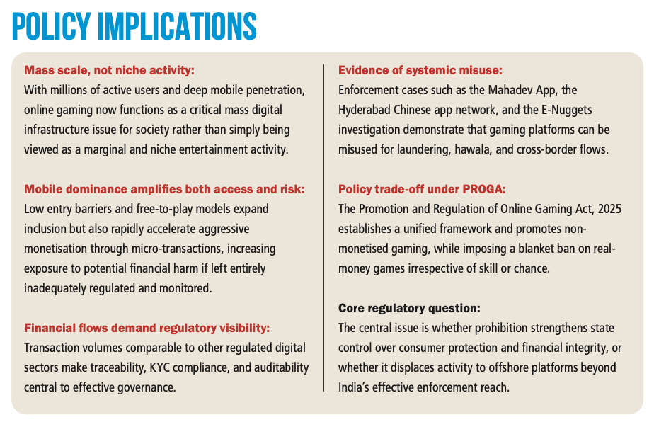 In the months since its implementation, however, the limitations of this approach have become increasingly evident. Rather than reducing participation or mitigating harm, prohibition appears to have displaced user activity toward unregulated offshore platforms operating beyond India’s effective enforcement reach. This shift weakens consumer protection and financial transparency, and critically, strips the state of its ability to distinguish between compliant